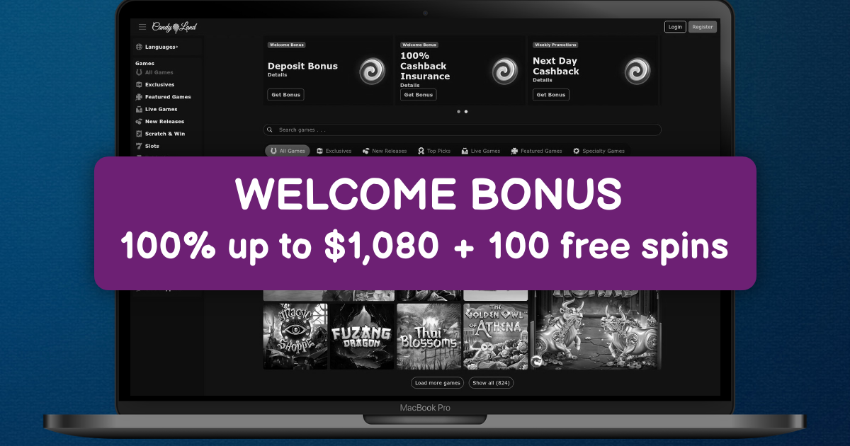 Candyland Casino offers slots, table games, live dealer tables, and poker variants. It features free spins, a no deposit bonus, and a free chip bonus when active. It supports promo code entry during registration and in the cashier. It lists wagering terms in plain language on each offer page.